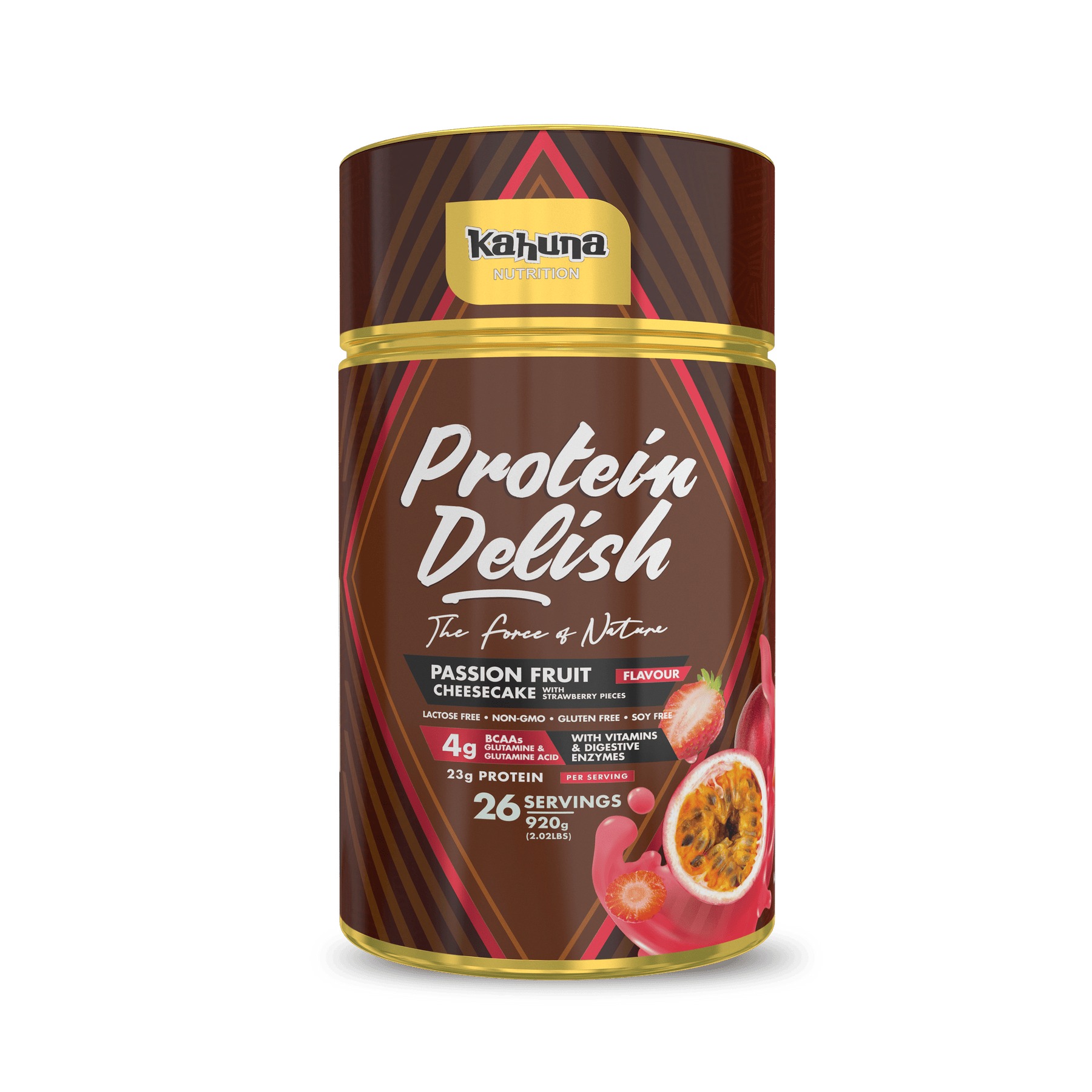 Kahuna Protein Delish with real fruit is a delicious easy way to increase the protein in your diet. It is a blend of high quality pea protein isolate and hemp protein, perfect for people who are lactose sensitive or just looking for a great tasting way of supplementing their daily diet and build lean tissue.