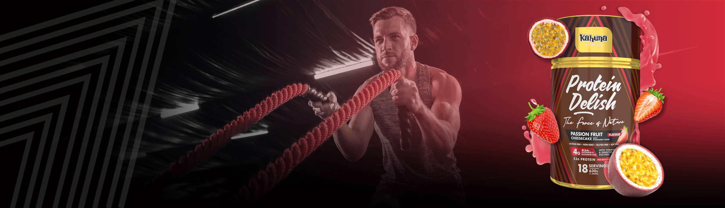 Kahuna Protein Delish with real fruit is a delicious easy way to increase the protein in your diet. It is a blend of high quality pea protein isolate and hemp protein, perfect for people who are lactose sensitive or just looking for a great tasting way of supplementing their daily diet and build lean tissue.