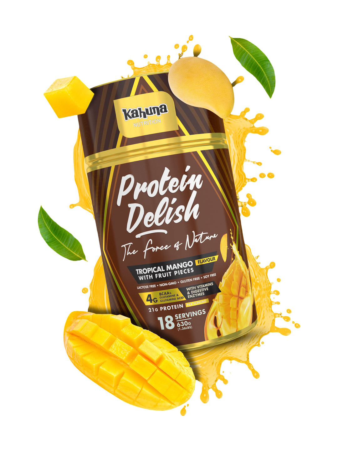 With a robust 21 grams of premium protein per serving, Protein Delish Tropical Mango with Real fruits helps you build and repair muscle, recover faster, and keep your energy levels at their peak.